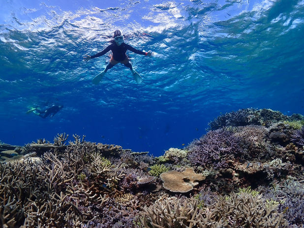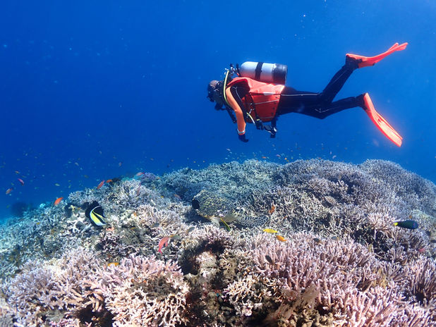 八重干瀬とは、宮古島北方にある池間島から北へ船で20分ほど行ったところにある南北17㎞、東西6.5㎞にわたり広がっている日本最大級の珊瑚礁群です。